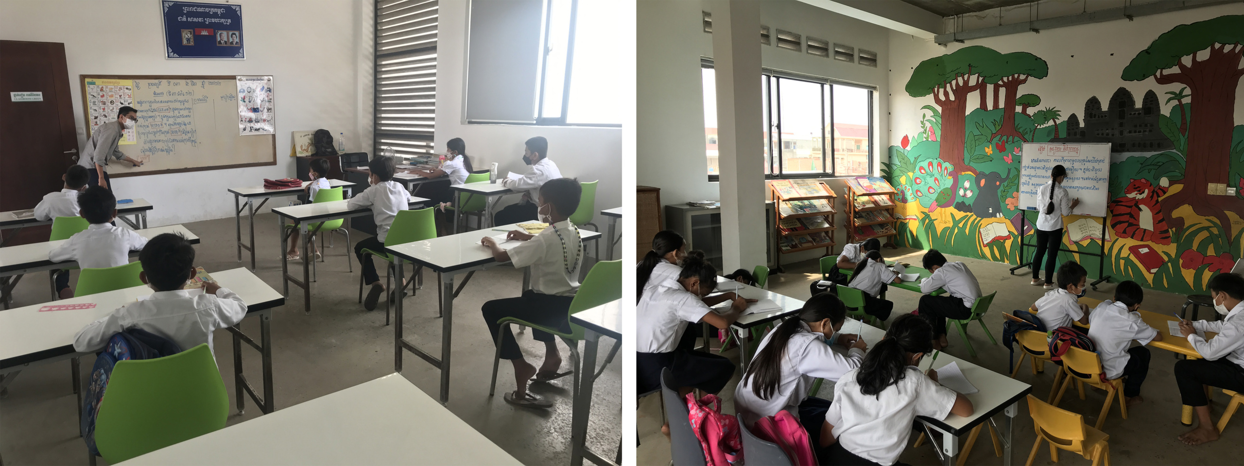 Hormis les cours de français, donnés par des bénévoles, l’enseignement est assuré par une équipe de professeurs cambodgiens.